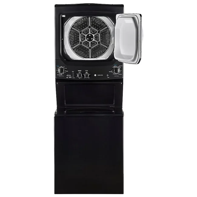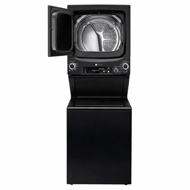 Centre de buanderie GE – 27 pouces, laveuse 4,5 pi³ & sécheuse électrique 5,9 pi³, noir – GUD57EEMTDG