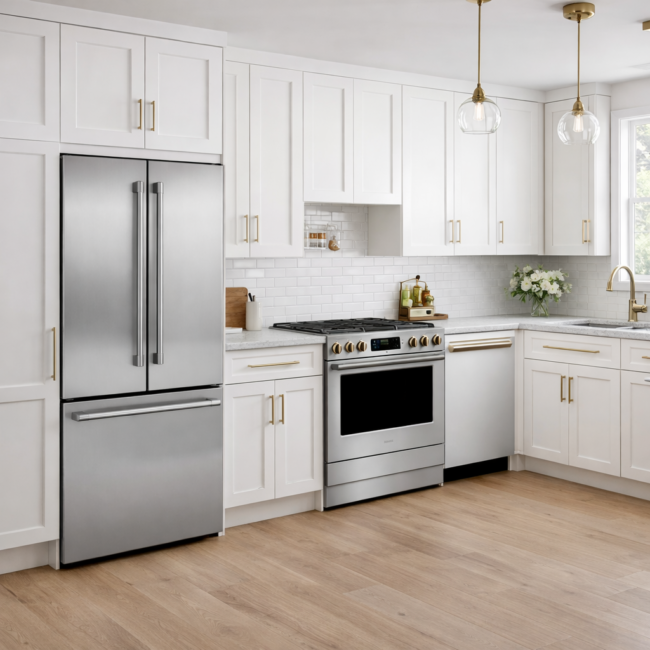 Combo cuisine Monogram inox – réfrigérateur 36 pouces + cuisinière biénergie – ZWE23NSTSS & ZDP366NTSS