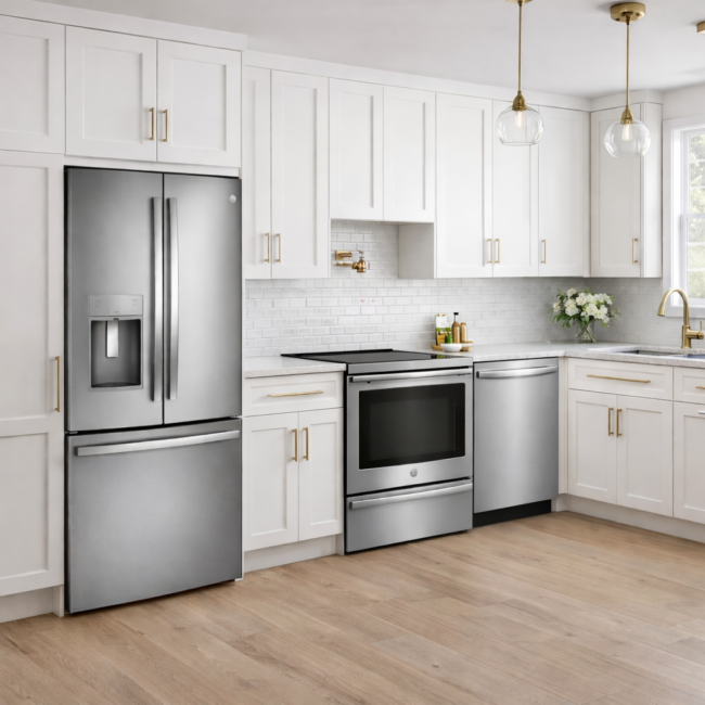 Combo cuisine GE Profile inox – réfrigérateur 36 pouces + cuisinière à induction – PCHS920YMFS + PYD22KYNFS