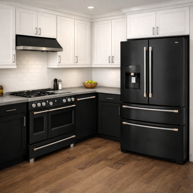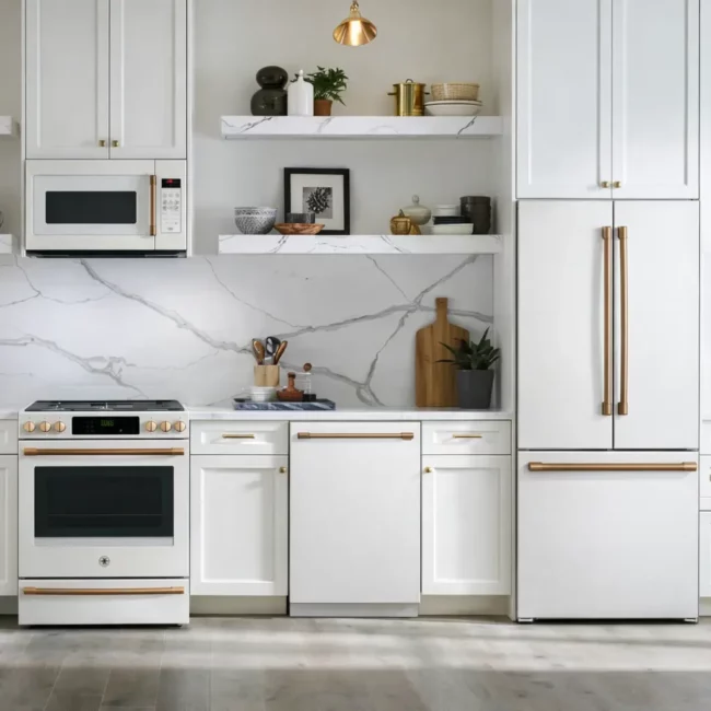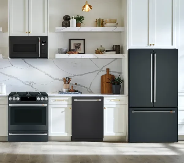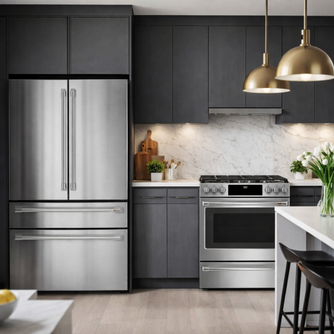GE Café stainless steel kitchen set, refrigerator + dual energy stove - CJE23DP2WS1 | CC2S900P2MS1