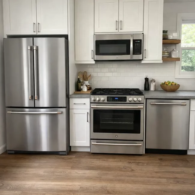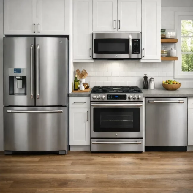 GE Profile stainless steel kitchen set - refrigerator, induction stove and dishwasher - PYD22KYNFS + PCHS920YMFS + GDT650SYVFS