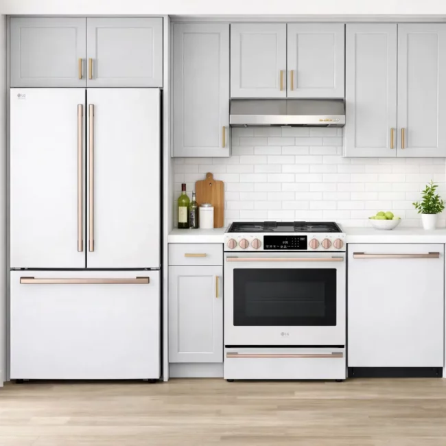 LG Studio white kitchen set - refrigerator, induction stove and dishwasher - SRFB27W3 + LSIS6338NE + SDWB24W3