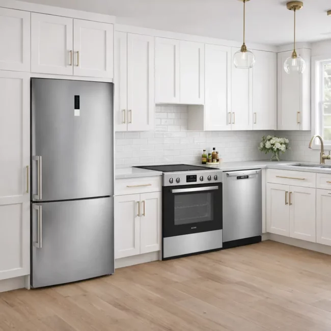 24-inch compact kitchen set - Moffat refrigerator + Aviva electric range - MBE11DSVSS & ACRE24CSB