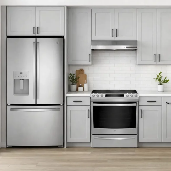 24-inch compact kitchen set - Moffat refrigerator and GE range - MBE11DSVSS & JCAS640RMSS