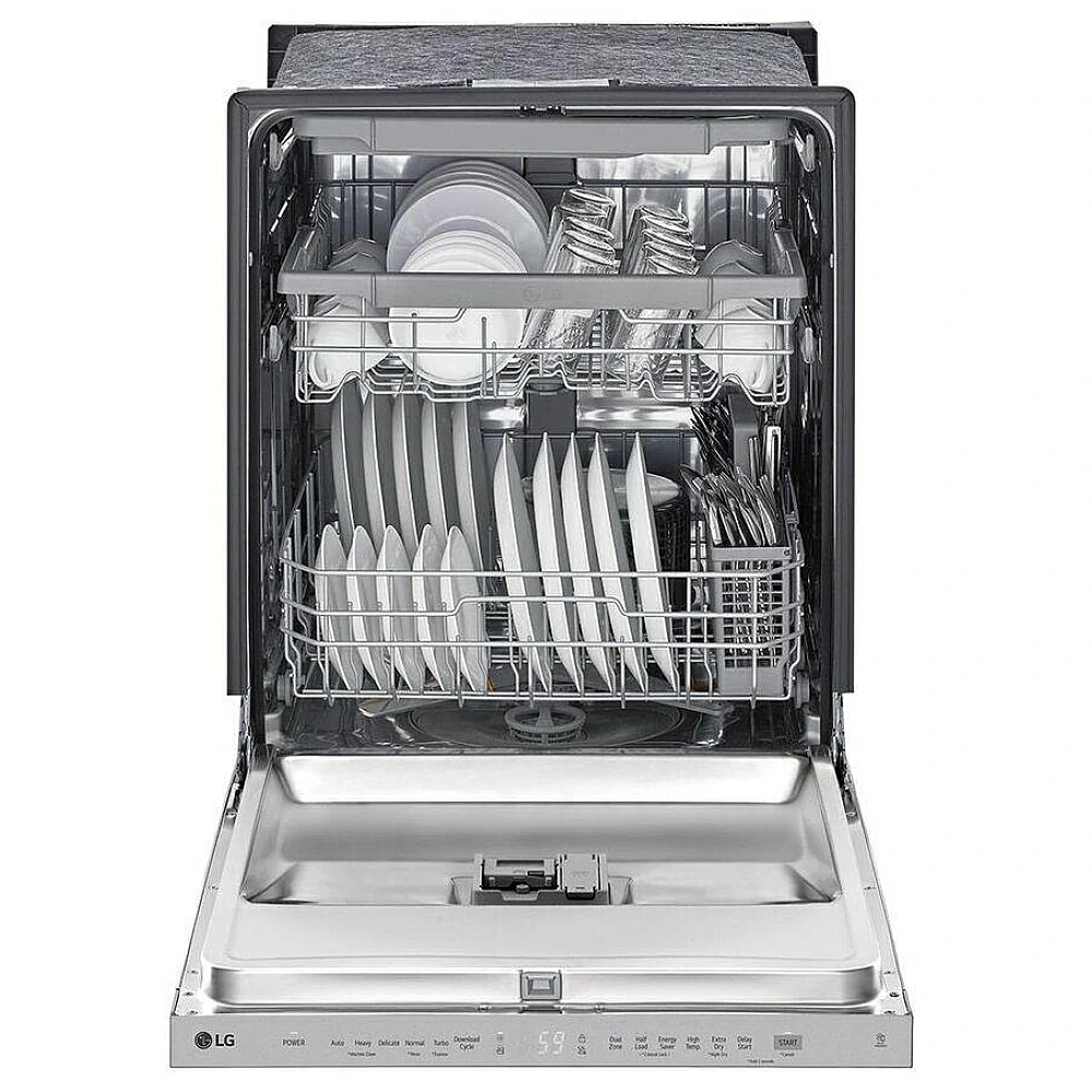 The lg LDPN454HT dishwasher is a fully integrated 24-inch model designed for flush-mount installation with concealed controls. The stainless steel interior is suitable for regular residential use.
