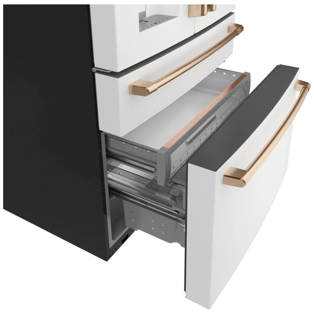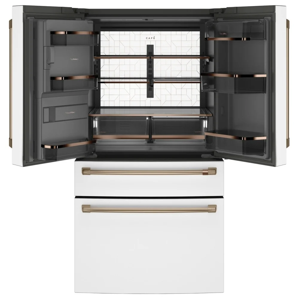 Le réfrigérateur Café CXE22DP4PW2 est conçu pour offrir une intégration harmonieuse dans la cuisine grâce à son format à profondeur de comptoir. Son design s’aligne avec les armoires, ce qui crée une apparence plus épurée.
