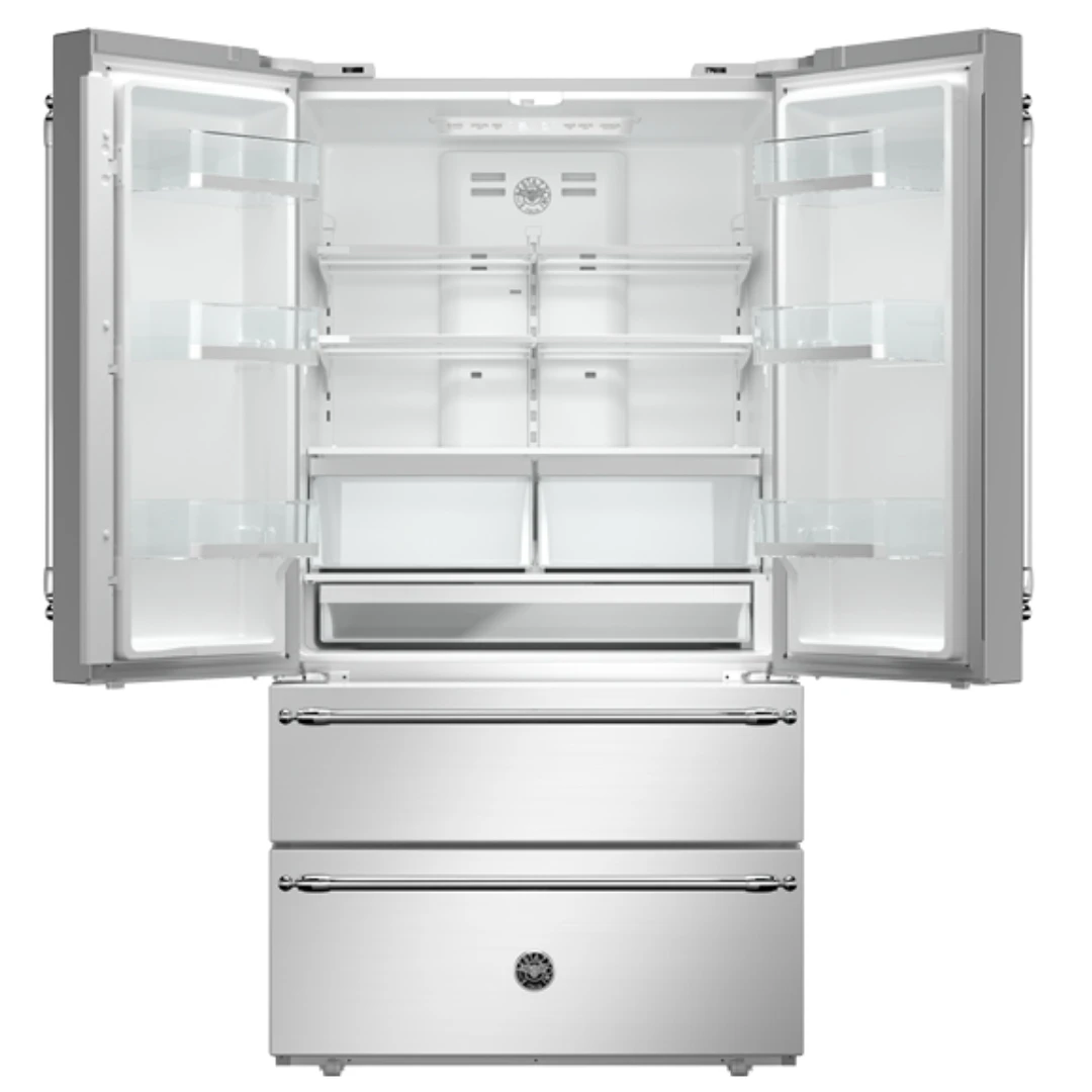 Ce réfrigérateur portes françaises Bertazzoni offre une solution haut de gamme et élégante pour la cuisine. Avec une largeur de 36 pouces et une capacité de 22,5 pi³, il permet de conserver une grande quantité d’aliments. Ainsi, il convient parfaitement aux familles.