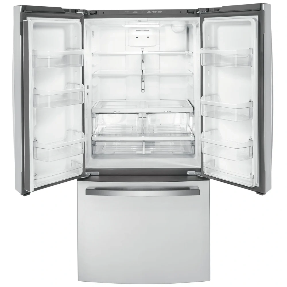 Le réfrigérateur GE GWE19JYLFS propose une solution compacte pour la conservation des aliments au quotidien. Ainsi, ce réfrigérateur GE de 33 pouces s’intègre facilement dans plusieurs cuisines résidentielles. De plus, sa configuration à portes françaises et son format à profondeur de comptoir offrent un accès pratique aux aliments tout en optimisant l’espace.