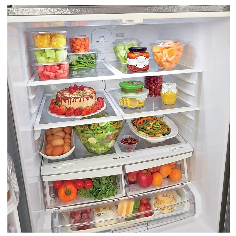 Le tiroir Glide n’ Serve permet de ranger facilement certains aliments du quotidien. Ainsi, l’accès devient plus simple selon les besoins. De plus, le congélateur inférieur avec tiroir DuraBase facilite l’organisation des produits surgelés. Ensuite, les compartiments permettent une gestion efficace de l’espace.