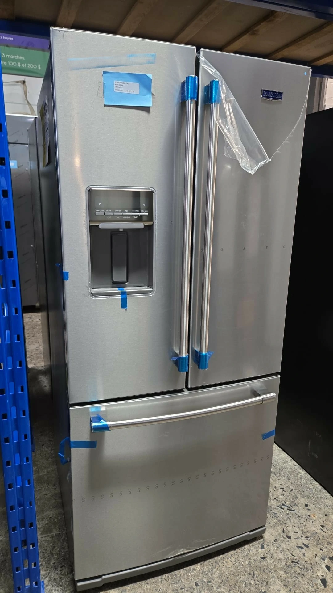 Le format 30 pouces convient aux cuisines avec espace restreint. De plus, la finition inox s’agence avec d’autres électroménagers. Ensuite, la configuration à portes françaises améliore l’accès aux aliments du réfrigérateur.