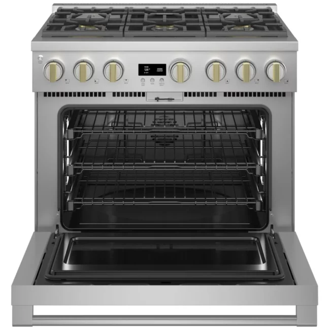 Cuisinière à biénergie Monogram – 36 pouces, 5,75 pi³, inox – ZDP364NDTSS