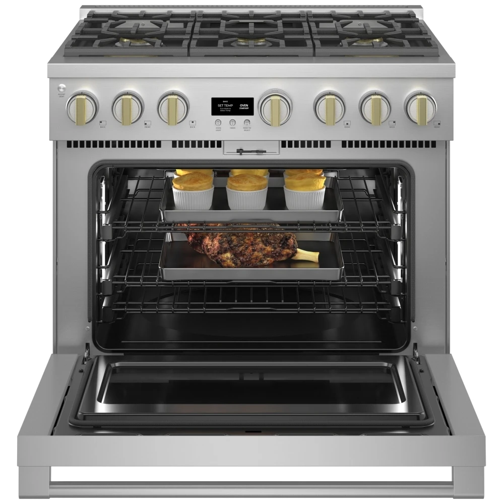 La cuisinière à biénergie Monogram ZDP366NTSS est conçue pour offrir une cuisson précise et une performance adaptée aux cuisines modernes. Sa configuration combine une surface de cuisson au gaz et un four électrique.
