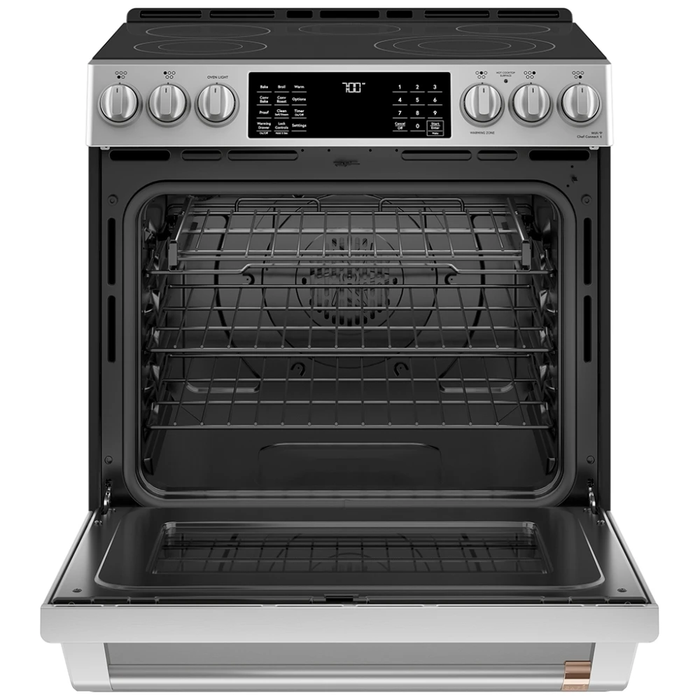 Cette cuisinière Café convection offre une solution haut de gamme et performante pour la cuisine. Avec une largeur de 30 pouces et une capacité de 5,7 pi³, elle permet de préparer plusieurs plats avec précision. Ainsi, elle convient parfaitement aux cuisines modernes.