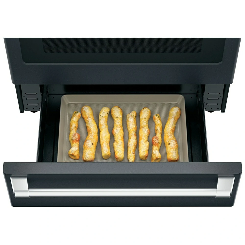 La capacité du four atteint 5,7 cu. ft., ce qui permet de préparer des repas familiaux. De plus, la True Convection favorise une cuisson uniforme. Ensuite, la fonction Air Fry ajoute une option de cuisson plus croustillante sans huile supplémentaire. De plus, le tiroir de maintien au chaud (Warming Drawer) garde les plats à température jusqu’au service. Enfin, le système autonettoyant simplifie l’entretien.
