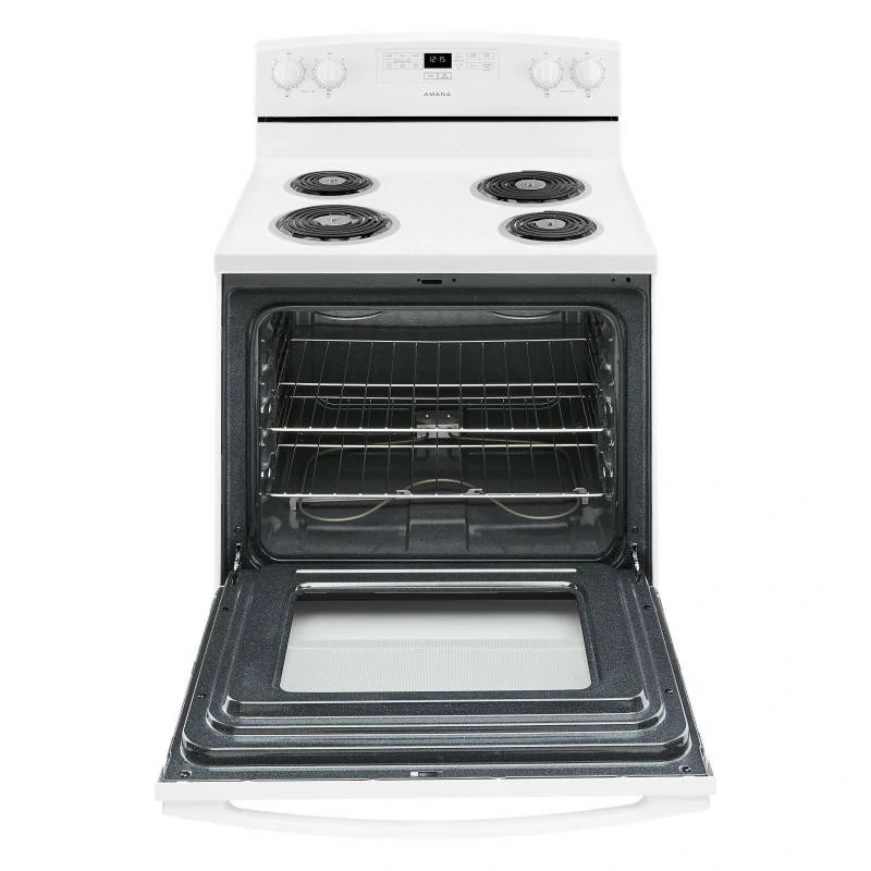 Le format 30 pouces convient à la majorité des cuisines. De plus, la finition blanche apporte un style simple et lumineux. Ensuite, le tiroir de rangement situé sous le four permet de garder les accessoires de cuisson à portée de main. Enfin, la cuisinière AMANA combine fonctionnalité et simplicité pour l’usage quotidien.