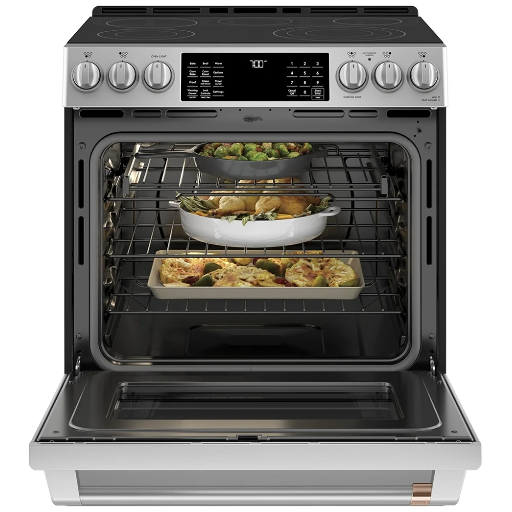 La cuisinière électrique GE Café CCES700P2MS1 est conçue pour offrir une cuisson précise et une utilisation polyvalente au quotidien. Sa surface de cuisson électrique permet d’ajuster facilement la chaleur selon les besoins.