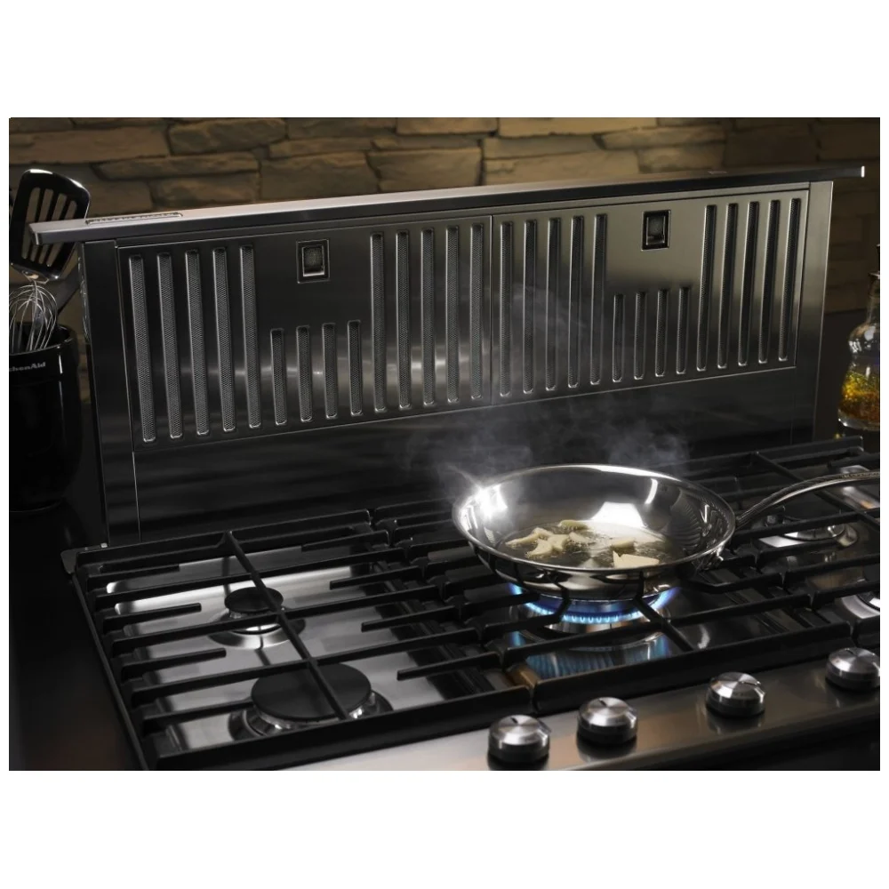 Cette hotte KitchenAid downdraft offre une solution performante et discrète pour la ventilation de la cuisine. Avec une largeur de 36 pouces et une puissance de 585 CFM, cette hotte KitchenAid permet d’éliminer efficacement fumée, odeurs et vapeur. Ainsi, elle convient parfaitement aux cuisines modernes.