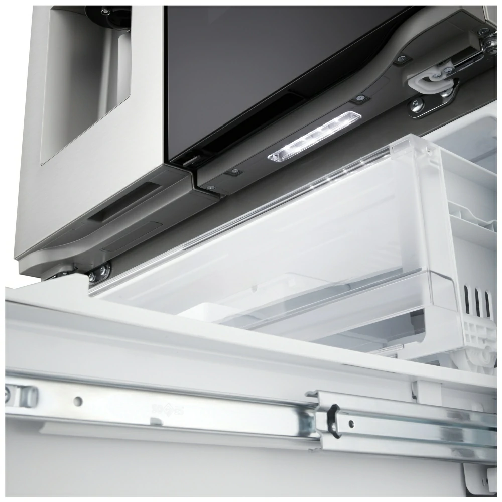 Le format 33 pouces convient aux cuisines plus compactes. De plus, la finition en acier inoxydable apporte une apparence moderne et élégante. Ensuite, la porte InstaView permet de voir à l’intérieur sans ouvrir le réfrigérateur. Enfin, la connectivité ThinQ permet un contrôle pratique depuis un appareil mobile.