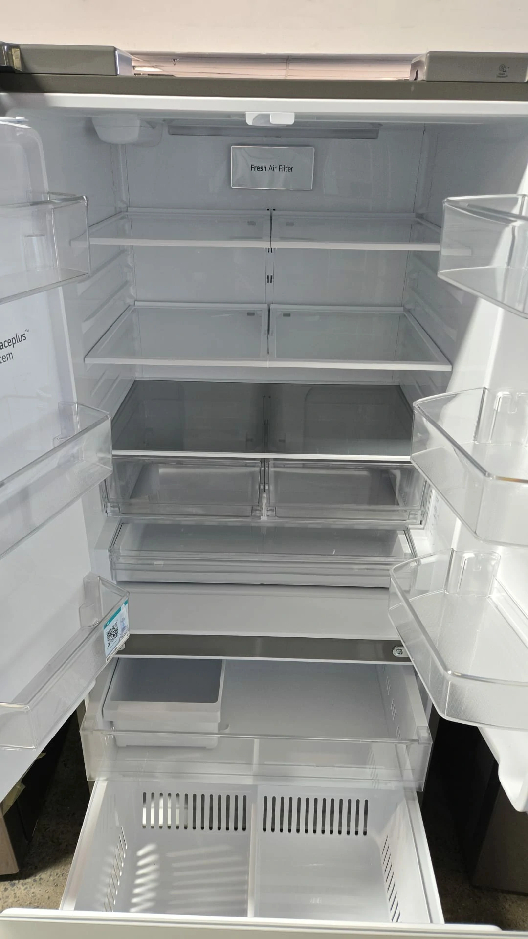 Ce modèle offre une capacité totale de 25 pi³. L’espace intérieur facilite le rangement des aliments frais et congelés. De plus, les tablettes en verre permettent une organisation claire. Ensuite, les tiroirs aident à conserver fruits et légumes séparément.