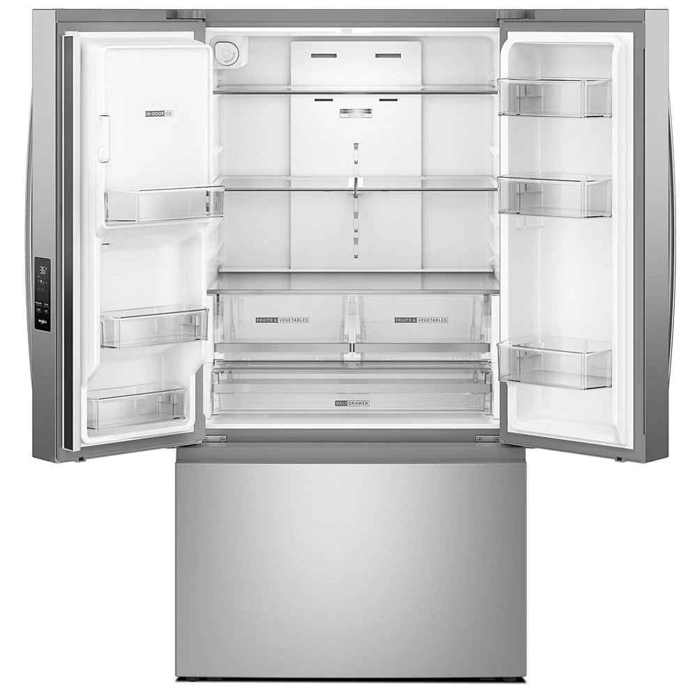 Le réfrigérateur à portes françaises Whirlpool offre une très grande capacité et un design moderne adapté aux besoins quotidiens. Grâce à sa largeur de 36 pouces, il permet un rangement optimal des aliments. De plus, ses distributeurs externes ajoutent praticité et confort. Ainsi, il constitue une solution idéale pour les familles.