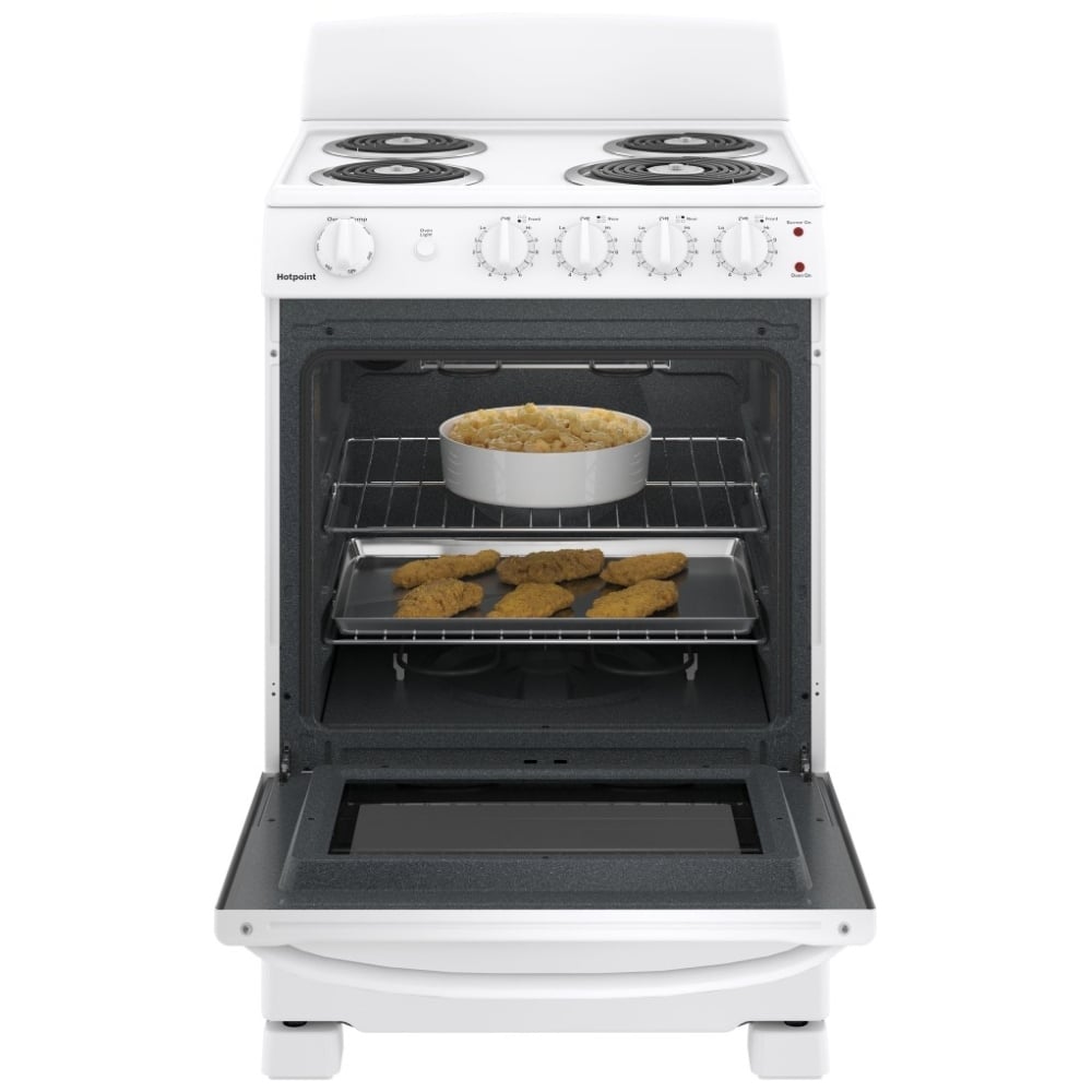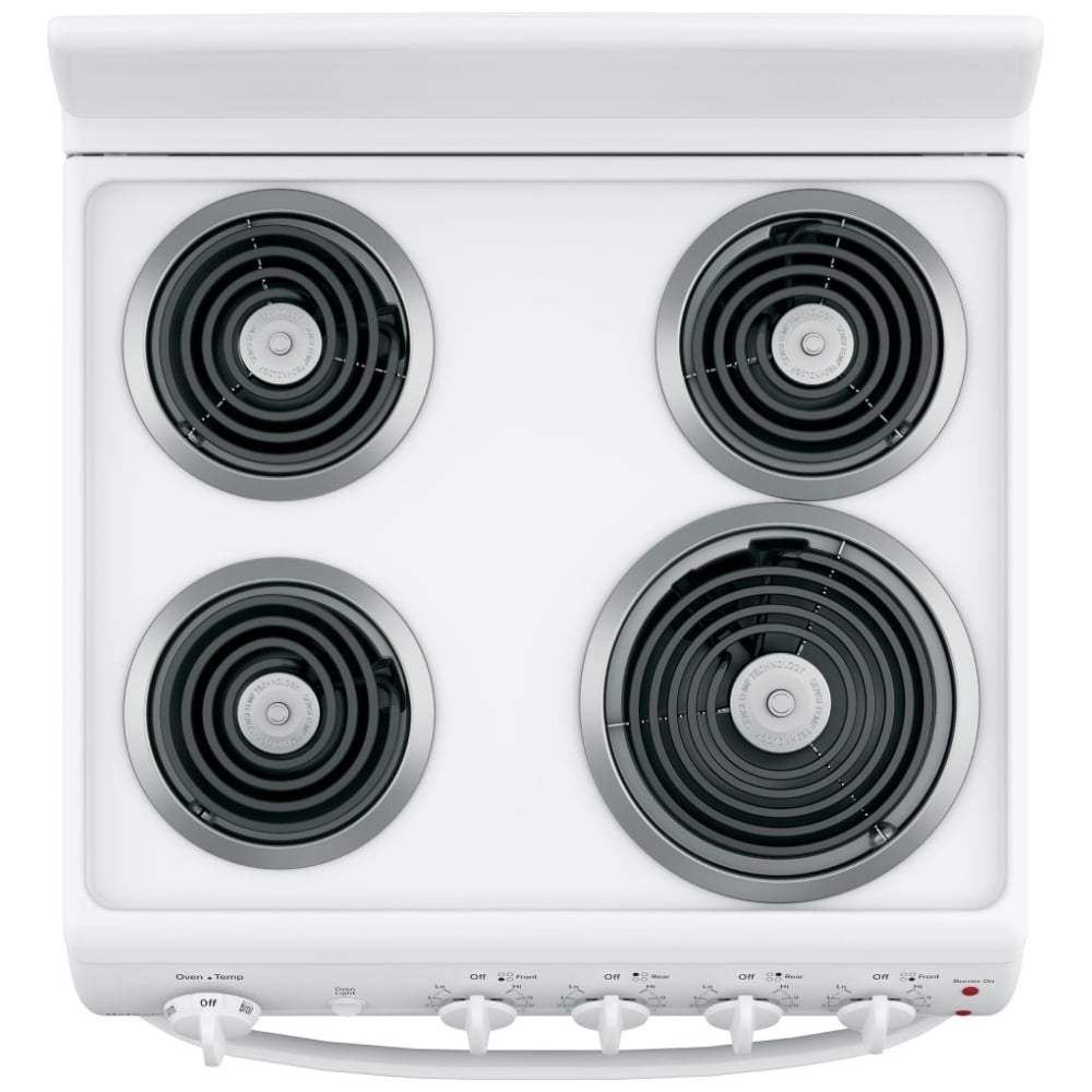 Cuisinière électrique GE – 24 pouces, 2,9 pi³, 4 éléments, tiroir de rangement, blanc – JCAS300DMWW